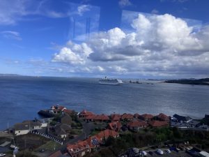 Went on another trip to Edinburgh to see the podiatrist today.  It was a lovely day and I saw another cruise ship sitting by the bridge.