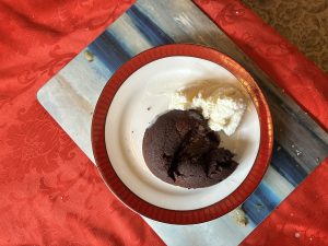 Today we had a lovely brisket pot roast with roasties, Yorkshire puddings and veg. I cooked the beef in the slow cooker with onions, carrots, stock and herbs for five hours. It was meltingly tender and the juices made a lovely gravy. We also had that most celebrated pudding of many Masterchef disasters – a chocolate fondant. It actually turned out pretty perfectly for me – soft cake on the outside and melting interior. It even came out of the mould successfully all three times!