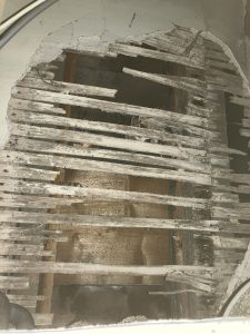 When the plumbers went into the “roof space” between the basement and the ground floor – they found some interesting original lathe and plaster – plus many mysterious looking pipes and wires.