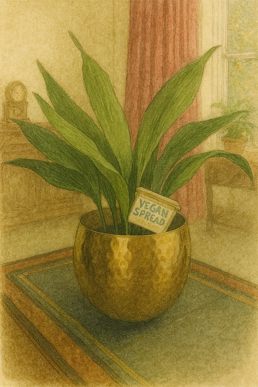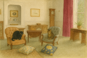 The title is a deliberate misquote, and the story has been adapted to feature a Victorian house, two cats, and a vegan meal which goes wrong. I wrote the text and Chat GPT did the illustrations, featuring our actual house (and actual cats).