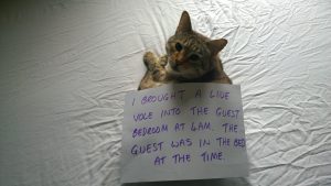 I digress slightly, but I will never forget when our cat Schrodi, who was a devil for voles brought a very lively one in to my Mum’s room in the wee small hours and released it under the bed. The total mayhem which ensued is not easily forgotten.