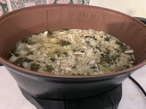 To go with my homemade bread I made some soup with the leftover chicken from yesterday. I actually followed my Gran’s recipe for this – she lived in Dumbarton and we always went through there for Easter. When we walked through the door we always got this soup which is made from chicken, onion, rice and parsley. I loved it, and the smell of it always brings back happy memories.