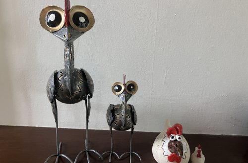 J bought me two new avian friends who have been christened Gallina and Ovum. The card with the eggs came in an envelope saying “Which is first?”