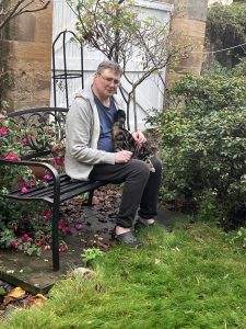I spent some time racking them up, and then J came to help me. After 10 minutes or so, he sat down on our bench for a rest (why he needed a rest after 10 minutes I cannot say) and was joined by an equally unenthusiastic gardener.