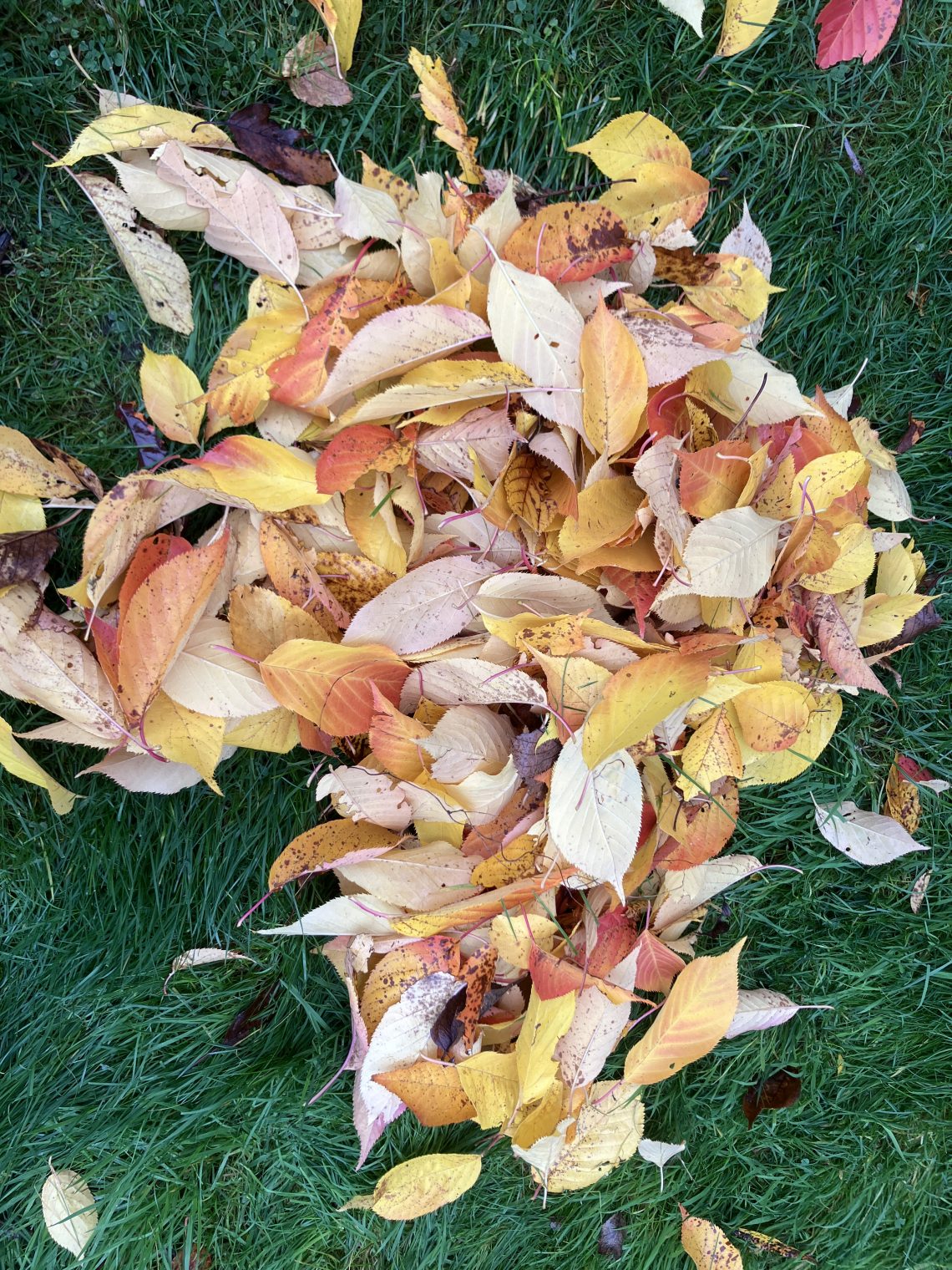 There are leaves all over our back garden, very pretty but they will ruin the lawn if they are left to rot.