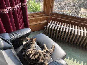 So just so that J and I had one little comfortable place to be, we took two of the leather chairs from Donich Lodge and put them in the bay window in the dining room.