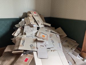When we first moved into the house (it was just J and I initially because R had been left behind house sitting in Argyll), the house was an unspeakable mess for weeks.  Imagine most the contents of two large houses and an overstuffed flat simultaneously being decanted into an even larger house, and then further car loads periodically being dumped before we had a chance to tidy away the first lot.