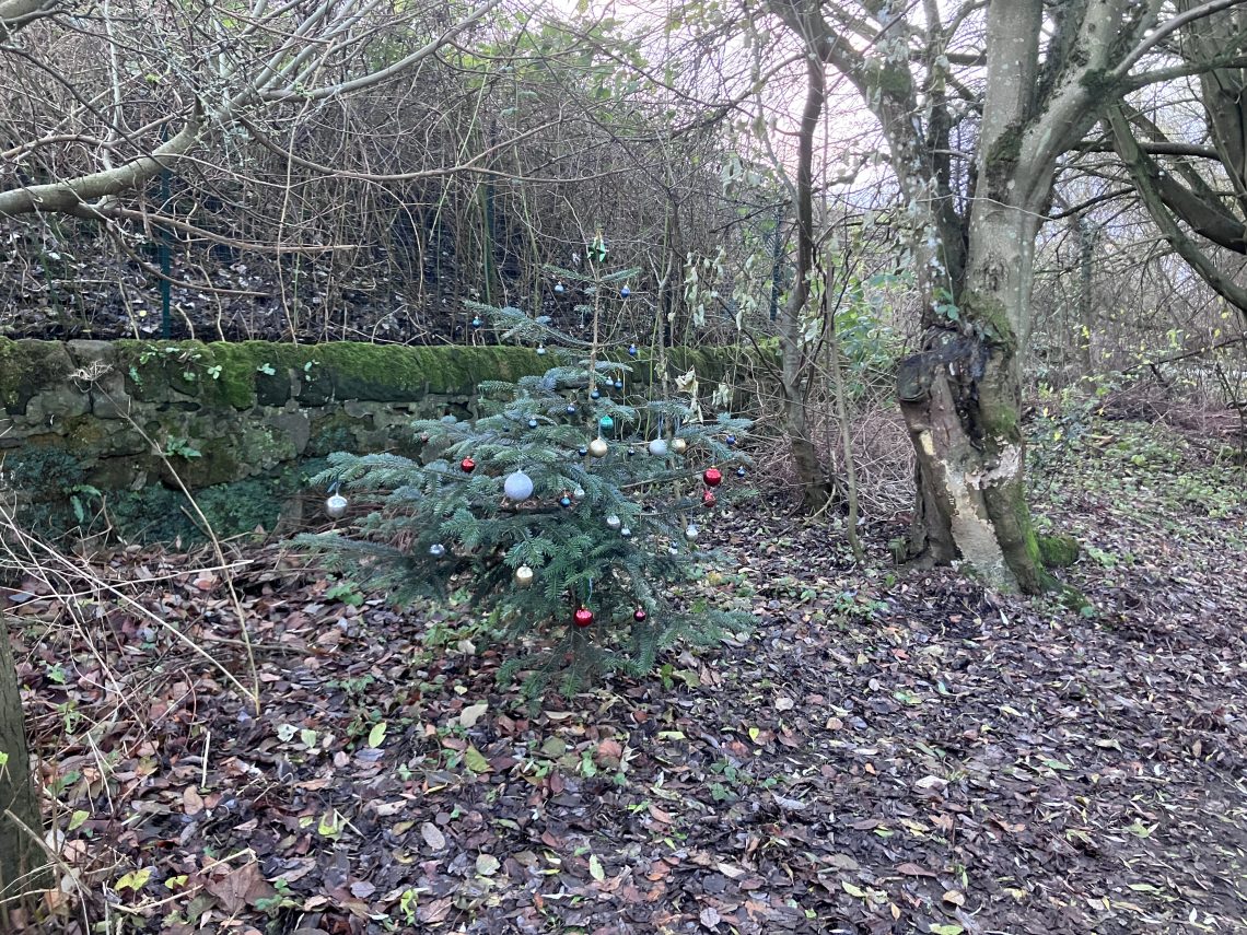 I thought it was really nice that someone thought to go out into a wood and decorate a live tree just to joy the hearts of passers by. So whoever you were, you joyed our hearts a bit.