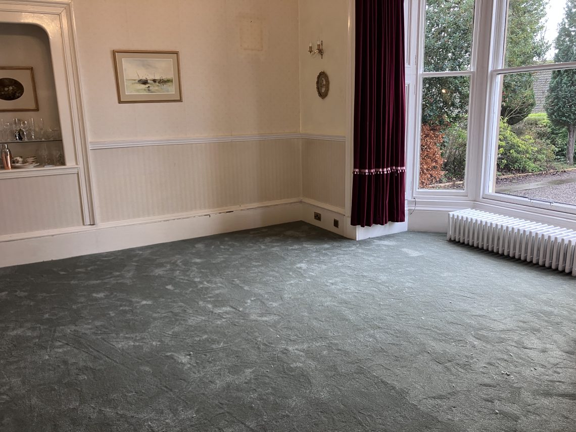 I took the opportunity today to close the very impressive looking red velvet curtains for the first time.  They are totally knackered when you see them properly – they have holes in them and are covered in splodges of emulsion paint which is impossible to remove.  They will need replacing in due course and can move up the list as I have decided that much as my bad foot would like a new soft carpet, the hall carpet is in fact fine and does not need done.