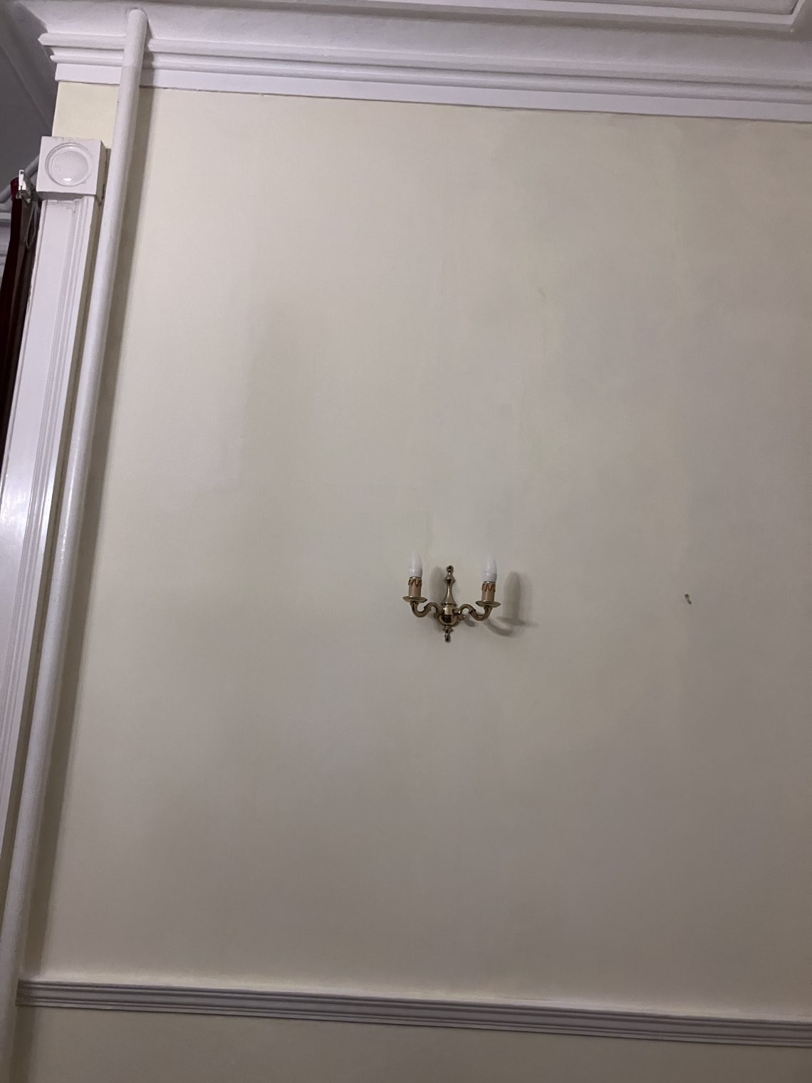 I managed to decorate the wall in the drawing room. That may not sound like much of an achievement, but the ceilings in here are so high that to put the wallpaper up, I had to stand on the top rung of an 8 step decorating ladder, and then let go of it with both hands to press the paper on to the wall and then smooth it out. Then primer, top coat, and possibly the worst part, once it was dry, trimming the excess from the very highest point with a Stanley knife and a steel rule. This was all a bit scary.