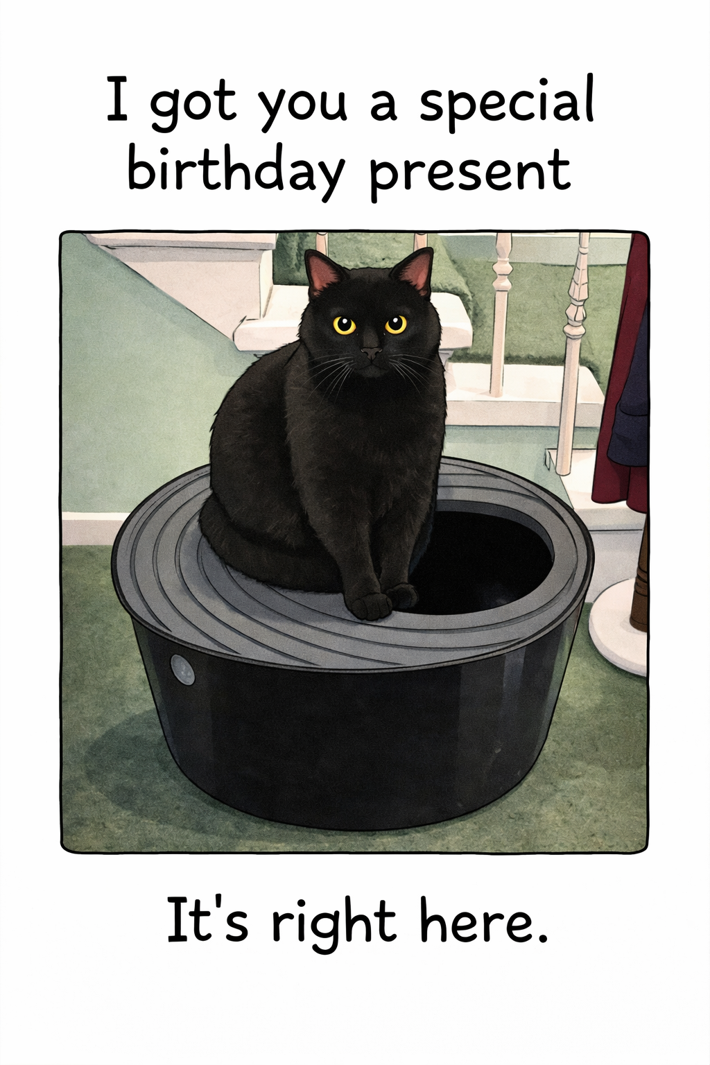 We think R had a nice day today.  He was left alone with his computer for long periods of time, ate burgers and chocolate and drank malt whisky.  Many people would think that a day would be empty without 15 hours of sleep, four pouches of Felix, 10 tickle sessions and half an hours vigorous “chase the bullet” game up and down the stairs – but each to their own.
