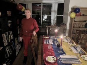 Me in J’s dining room just before consuming a Columbian feast on Christmas Eve