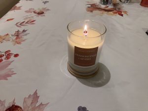 And last but not least a Christmas candle. I bought this months ago and it is scented with frankincense and myrrh. Very appropriate to burn for Christmas in hope for happiness for us and all we love and loved.