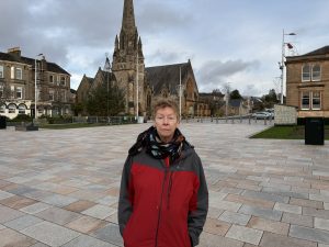 Today, R and I drove over to my Mum’s in Helensburgh, leaving J looking after the cats. Here I am in Colquhoun Square.