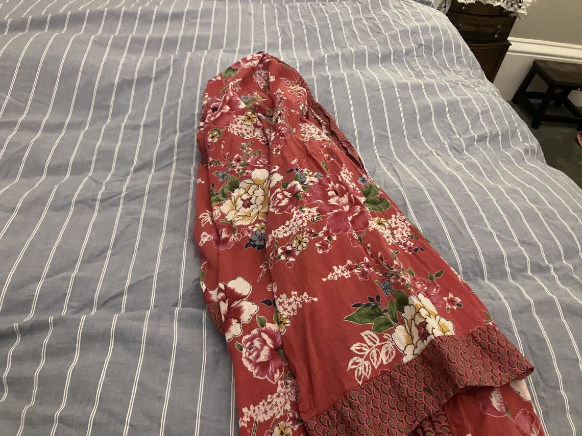 It is a silk dressing gown with a belt, and when I left it, the belt was securely attached to it.