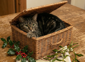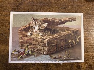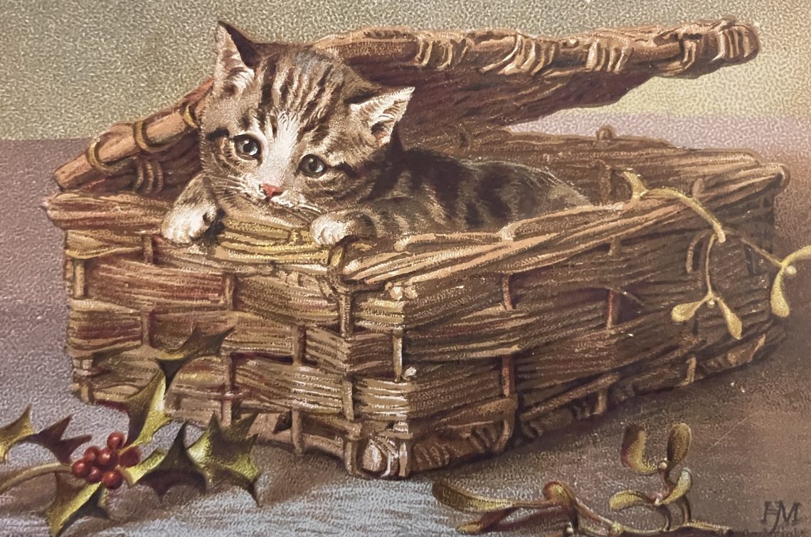 A friend I made at a local history group very kindly gave me this original Victorian New Year’s card as a gift.  She commented that the kitten looked like our cat Saphy.