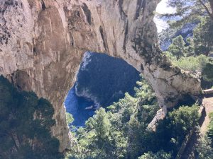 We went to Capri today having now located the right part of the port for the hydrofoils (we saw the Sorrento ferry we should have caught yesterday). The crossing was a little choppy and was not helped when we arrived at the other end by the fact that the funicular railway up to the town was closed and we had to take a rather stuffy bus.