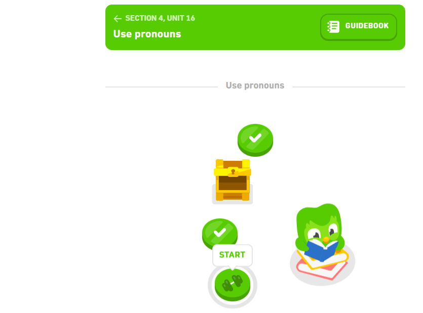 So I would say that beyond a certain point the Duolingo approach no longer works. I would abandon their course and just go on learning with the grammar book and other Internet content apart from the fact that from day one the annoying Duolingo ads have been informing me that I would have a five times better chance of completing the course with the paid version. So I am finishing it using the free version just to stick my tongue out.