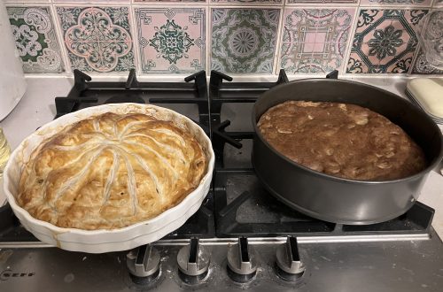 I made steak and sausage pie which was quite nice, with roast potatoes which were (I will say) excellent and a chocolate lava cake. This was a sort of take on a chocolate fondant, but much easier to take on a long journey – it is made from a soft batter which splits when baked into a sponge and accompanying sauce which is stable in a dish once cooked.
