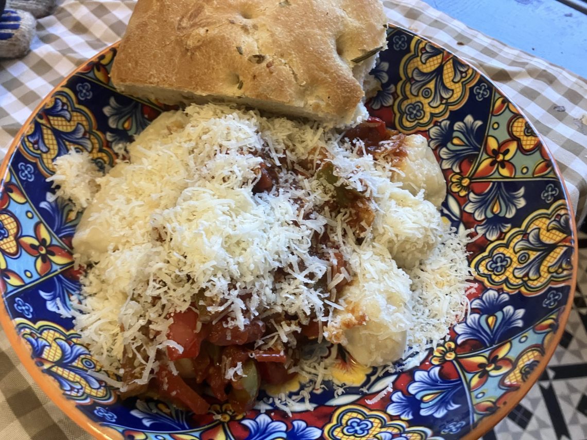 Today I made ricotta gnocchi in a tomato and pepper sauce with foccacia