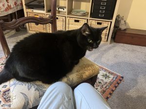 I will let Amber off because in general she is not a knee sitter, but Saphy happily sits on both J and R for hours but won’t come to me. And yet she joins me in my bathroom every night and watches me shower and clean my teeth.
