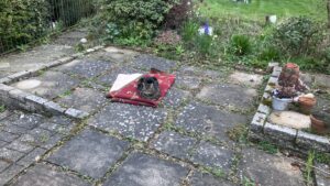Another little incident while garage cleaning was that I temporarily put a rug outside whilst I swept the floor. When I came back five minutes later Saphy had colonized it.