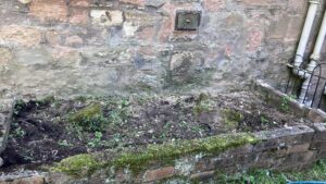 I dug the bed out this morning – it is a cold, north facing bed so I am going to need to be careful what goes in it – but at least it will be better than what was there before. Basically the roofers we had last year tipped concrete all over the back and I had to more or less chisel it out. There were also many stones, most of which I managed to get out. This is it dug over.