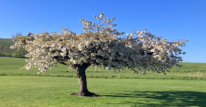 R and I saw a really beautiful tree on our walk this morning as well. Our cherry tree is just coming into flower – unfortunately it is a purely ornamental one rather than the edible sort.