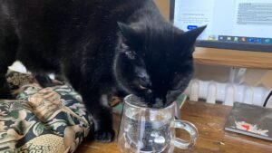 Today for the first time ever, Amber jumped on my desk and had a big drink from my glass of water.  Unlike R, I do not mind.