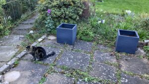 Saphy gave the planters a bit of a check over. Little does she know that our neighbouring black cat was in her garden again this morning.