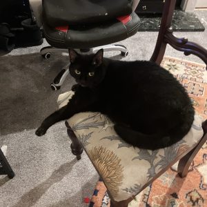 This morning the three of us were playing a computer game (we do that quite a lot) when R heard a squeaking noise from his bedroom. On investigation, Saphy was staring intently at…