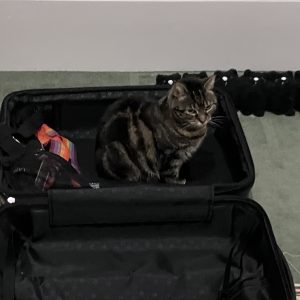 Saphy really, really can’t resist any type of bag or case.  I got this one out of the garage to make sure it wasn’t damp and Saphy did her own checking. Amber thought…
