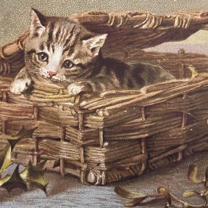 A friend I made at a local history group very kindly gave me this original Victorian New Year’s card as a gift.  She commented that the kitten looked like our cat Saphy. Here…